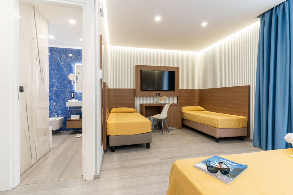 I due ambienti separati, luminosi e confortevoli, godono di un ampio balcone attrezzato sul quale rilassarsi. Queste sistemazioni offrono tutti i servizi e i comfort necessari per una vacanza indimenticabile.
