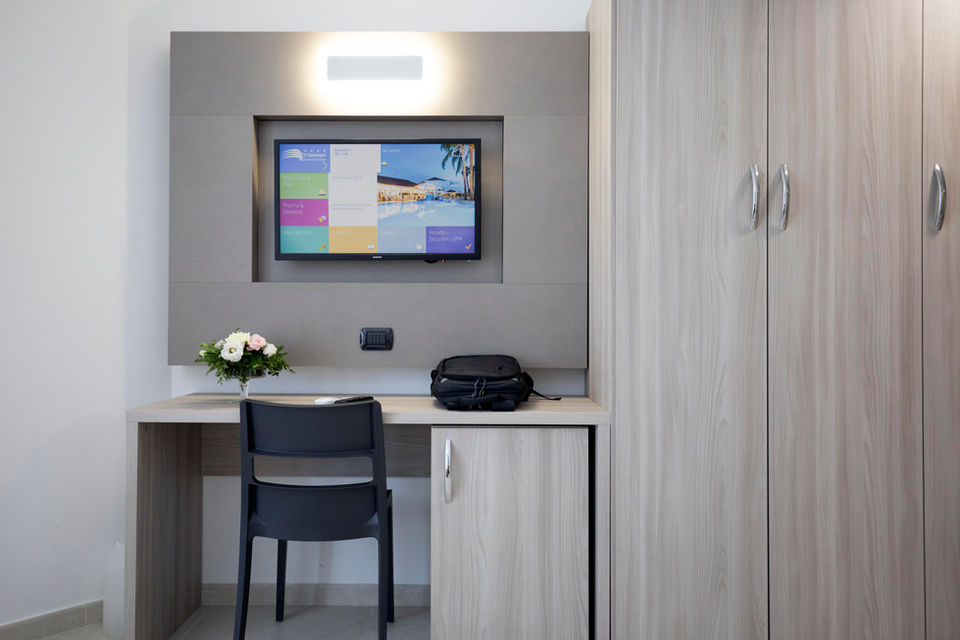 Spaziose, luminose e dai colori accoglienti. Bellezza e qualità si uniscono in questi ambienti di ultima realizzazione, dotata di un balcone attrezzato che affaccia sulla piscina. Queste stanze sono perfette per chi ama la comodità, la bellezza e la tranquillità. Offrono tutti i servizi